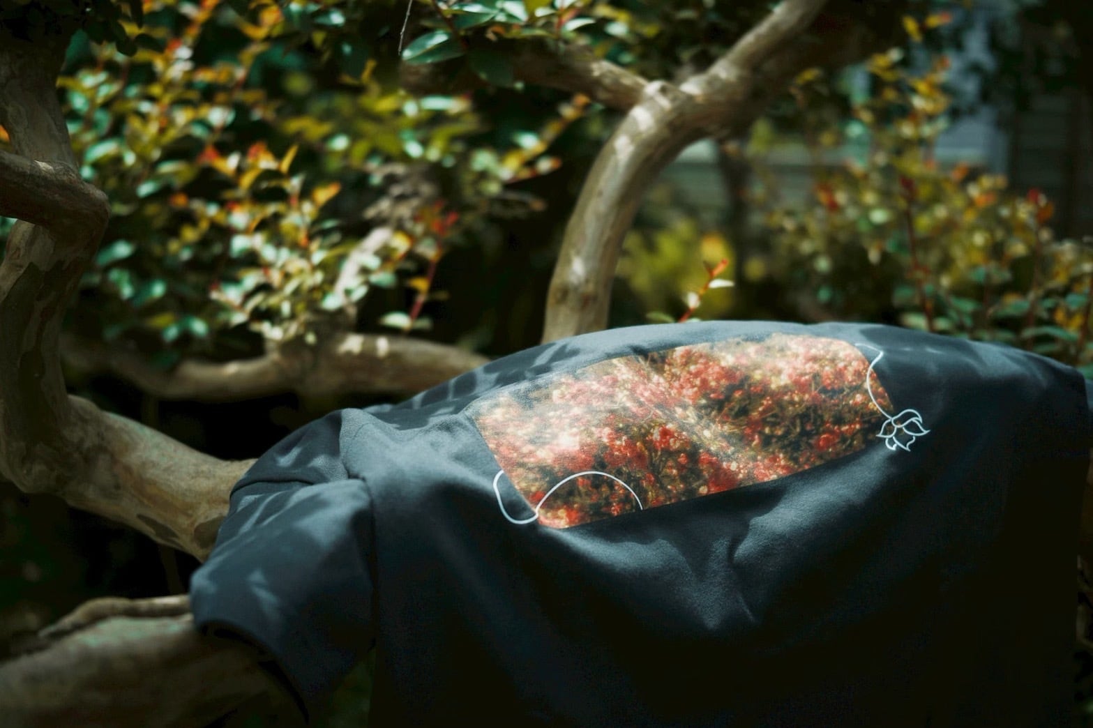 放春花のジャケット写真を使用した赤瀬デザインのこの一着は、シンプルながらも個性的な魅力が詰まっています。